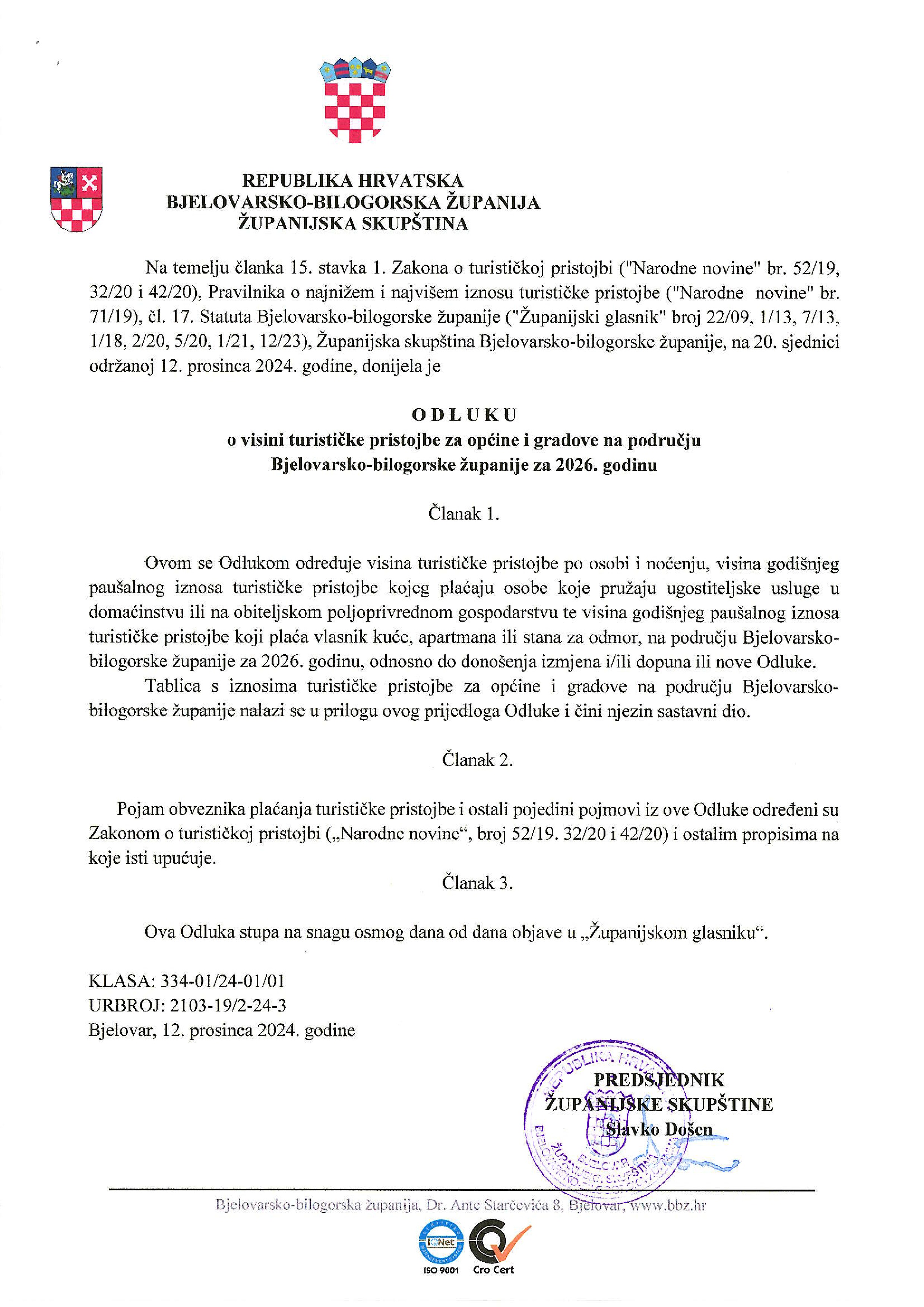 ODLUKU O VISINI TURISTIČKE PRISTOJBE U pdf.formatu PREUZMITE OVDJE